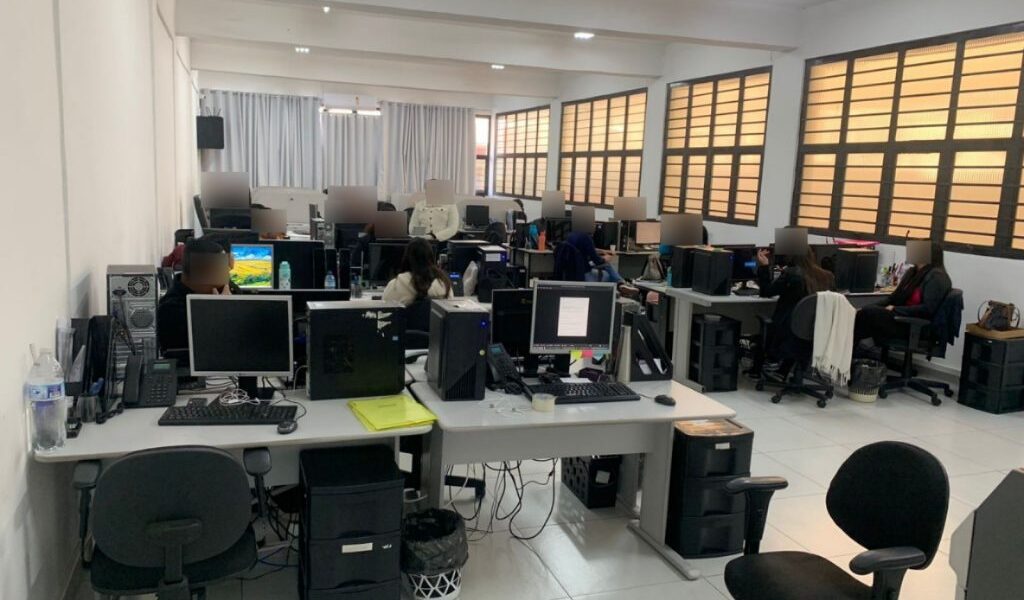 Durante o cumprimento dos mandados de busca e apreensão, os policiais encontraram o local em pleno funcionamento, com dezenas de pessoas aplicando golpes em tempo real. No espaço, foram apreendidos cerca de 50 computadores, celulares e diversos documentos, além de quadros com metas de arrecadação e roteiros detalhados que orientavam os suspeitos na abordagem e manipulação das vítimas.